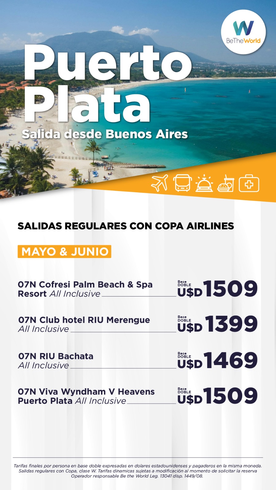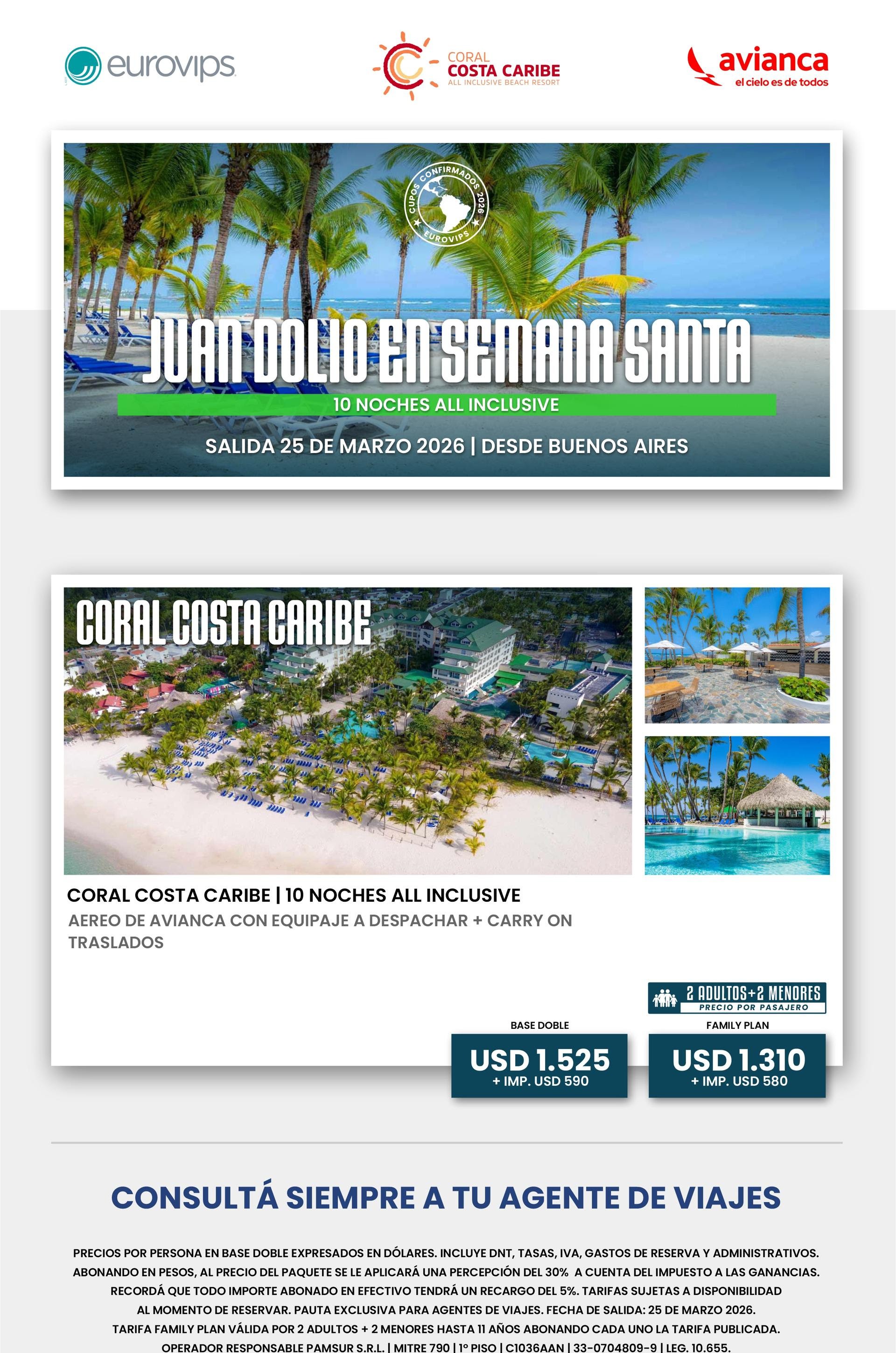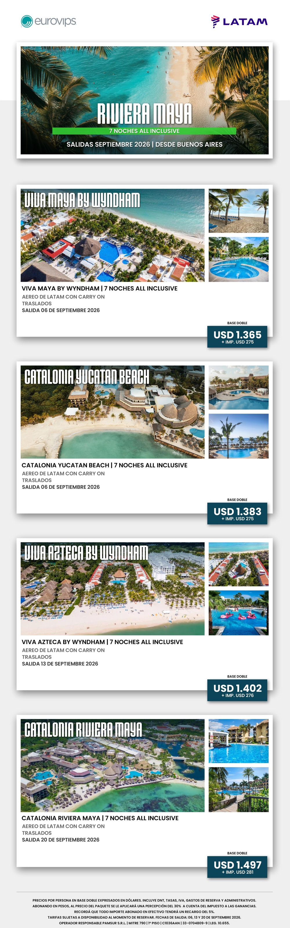 Tarifas en dólares por persona