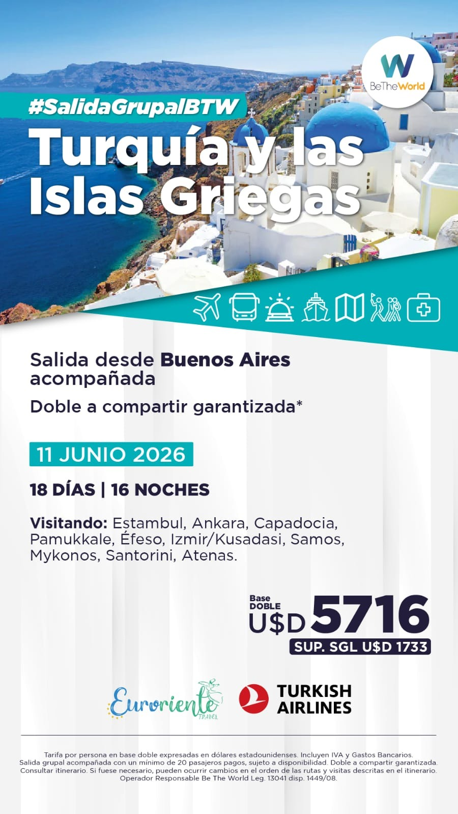 Precios en dolares por persona.