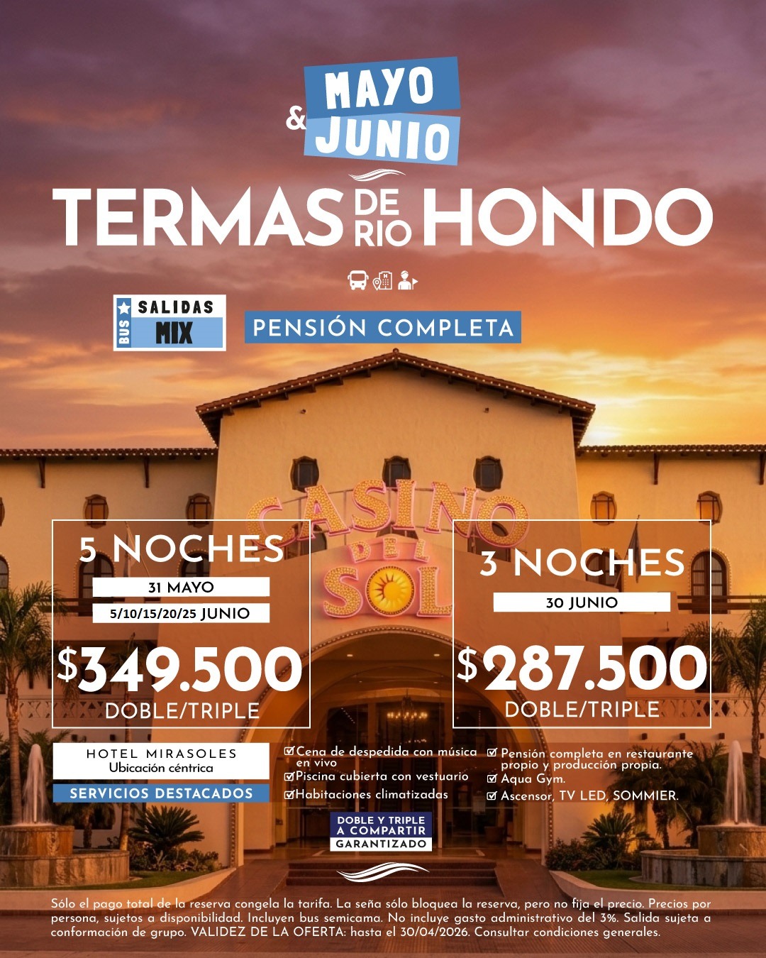 Todas las salidas están sujetas a formación de grupo y a modificación de tarifas.